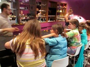 The thing we loved best was the Clay Bar. It's a space set up with limited seating and two instructors and apparently each day has a theme. That day's theme was "Dogs." I like that there are people there to actually assist with techniques if necessary. My kids spend a lot of time with modeling clay (they have an on-again off-again long term project to make a Bunny Western claymation film that should finally happen this summer), but it's always good to get ideas from new places and see what other people do, too.